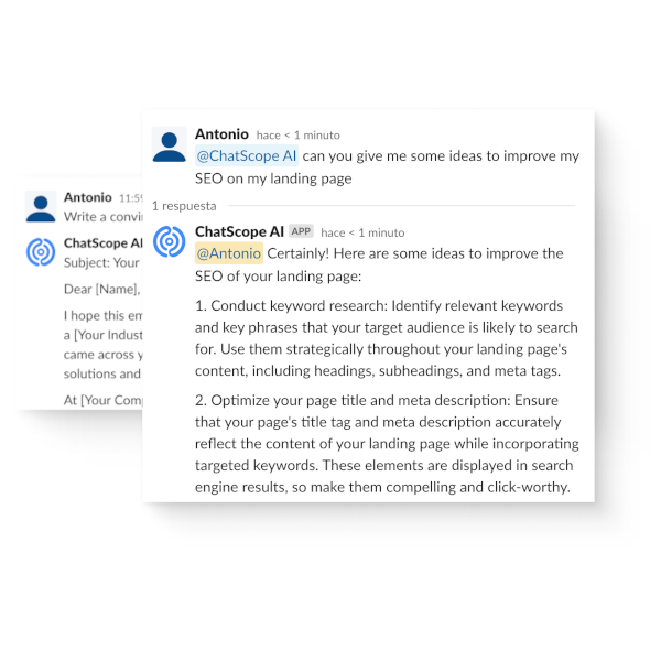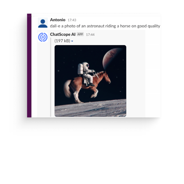 Keep things simple. Seamlessly integrate with Slack and enable your entire team to benefit from AI's power without having to leave the comfort of their preferred platform.