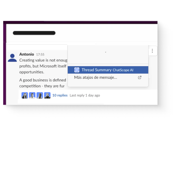 Our AI-powered thread summarizer provides distilled insights so you can keep up with the pace of your team's conversations.